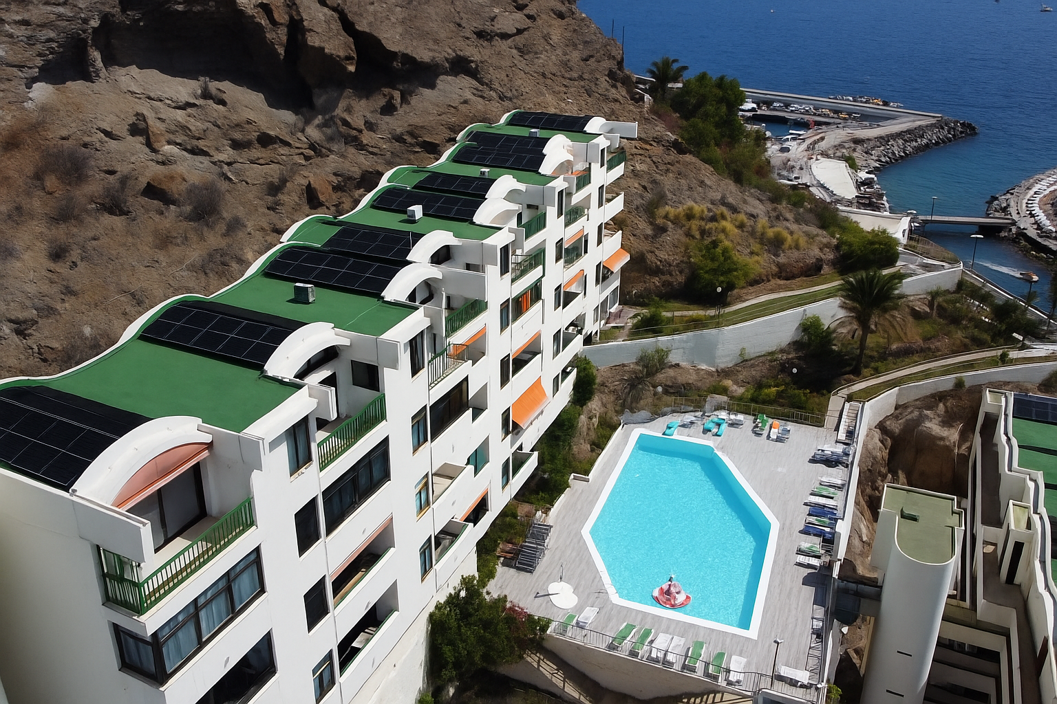 - Generación Eléctrica Fotovoltaica: Instalación fotovoltaica compuesta por 197 paneles de 460W cada uno, con una potencia total de 90,62 kWp.